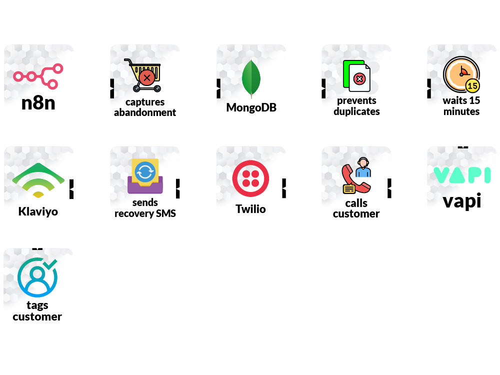 A human‑like voice agent calls the customer, reminds them of the items, and answers questions to rebuild intent.